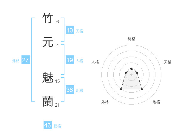 竹元 魅蘭さんの総格は46画の1点!