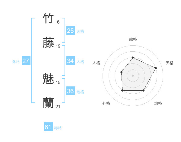 竹藤 魅蘭さんを姓名の画数から五運を鑑定