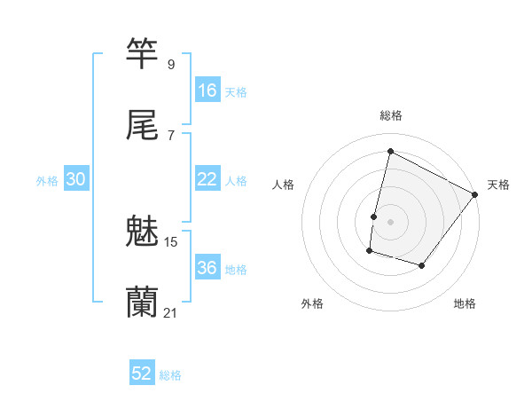 竿尾 魅蘭さんを姓名の画数から五運を鑑定