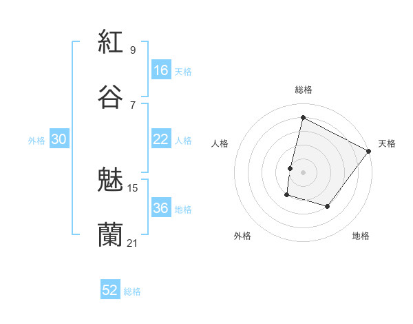 紅谷 魅蘭さんを姓名の画数から五運を鑑定
