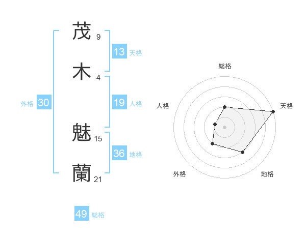 茂木 魅蘭さんの総格は49画の2点!
