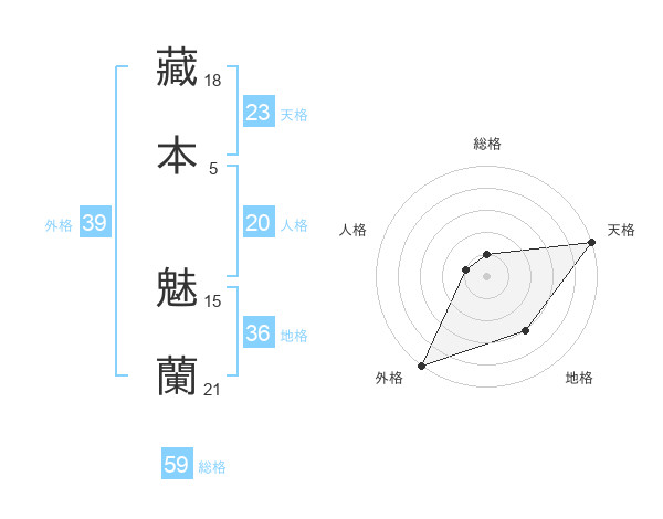 藏本 魅蘭さんの総格は59画の1点!