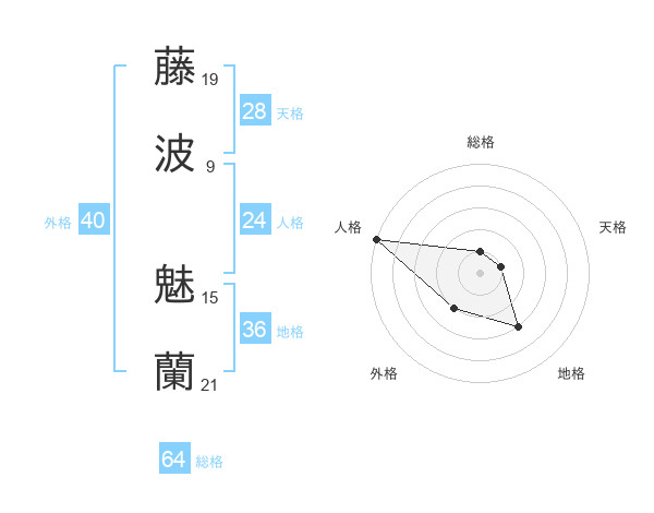 藤波 魅蘭さんの総格は64画の1点!