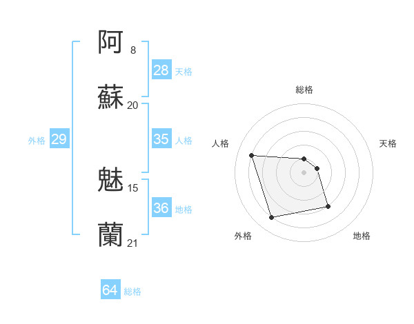 阿蘇 魅蘭さんの人格は35画の4点!