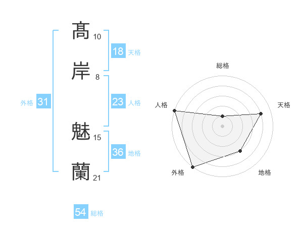 髙岸 魅蘭さんの外格は31画の5点!