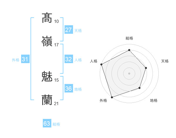 髙嶺 魅蘭さんを姓名の画数から五運を鑑定