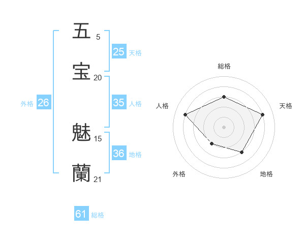 五宝 魅蘭さんを姓名の画数から五運を鑑定