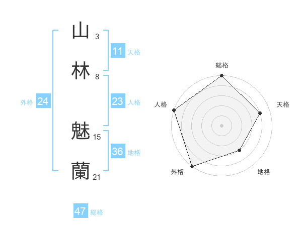 山林 魅蘭さんを姓名の画数から五運を鑑定