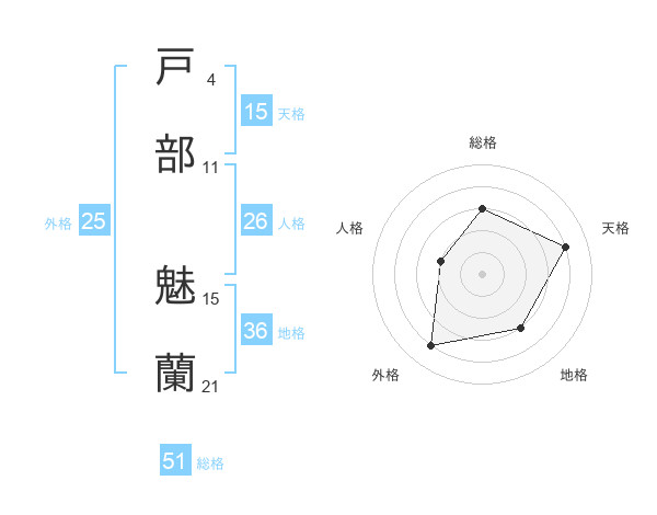 戸部 魅蘭さんの総格は51画の3点!