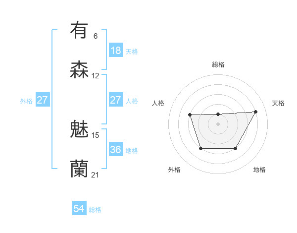 有森 魅蘭さんを姓名の画数から五運を鑑定