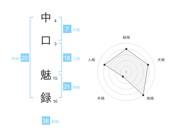 中口 魅録さんの総格は38画の4点!