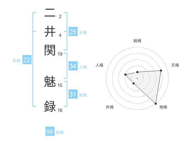 二井関 魅録さんを姓名の画数から五運を鑑定