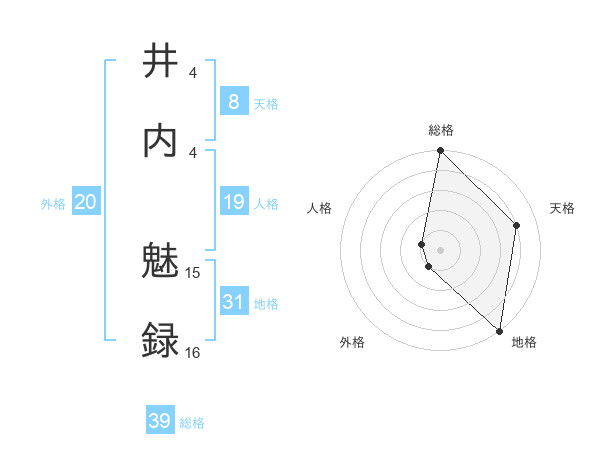 井内 魅録さんの総格は39画の5点!