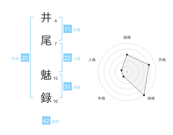 井尾 魅録さんを姓名の画数から五運を鑑定