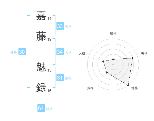 嘉藤 魅録さんを姓名の画数から五運を鑑定