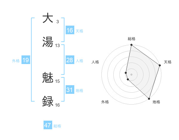 大湯 魅録さんの総格は47画の5点!
