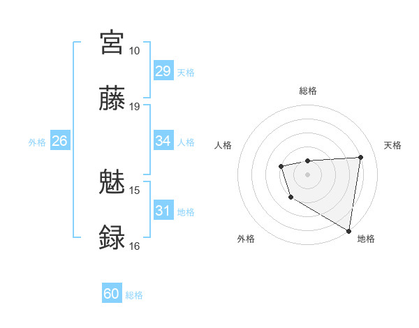 宮藤 魅録さんの総格は60画の1点!