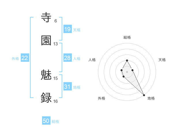 寺園 魅録さんを姓名の画数から五運を鑑定