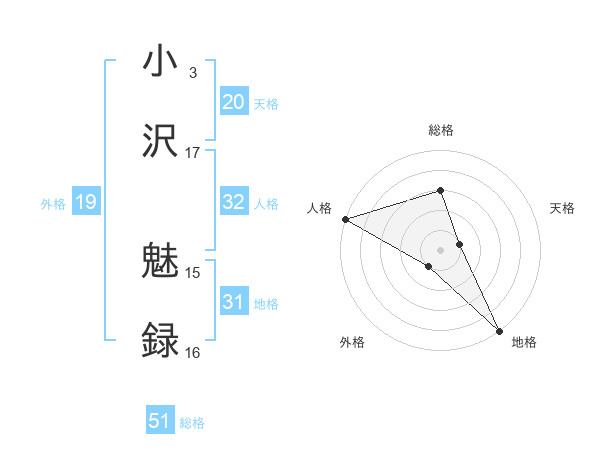 小沢 魅録さんを姓名の画数から五運を鑑定
