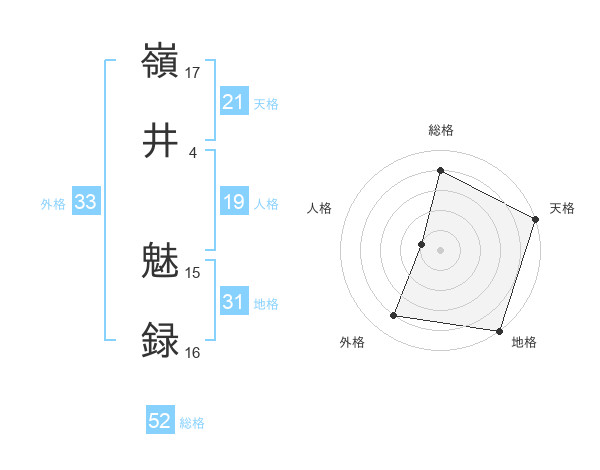 嶺井 魅録さんを姓名の画数から五運を鑑定
