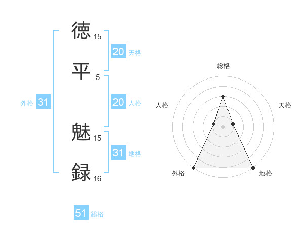 徳平 魅録さんを姓名の画数から五運を鑑定