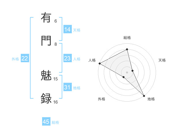 有門 魅録さんの総格は45画の4点!