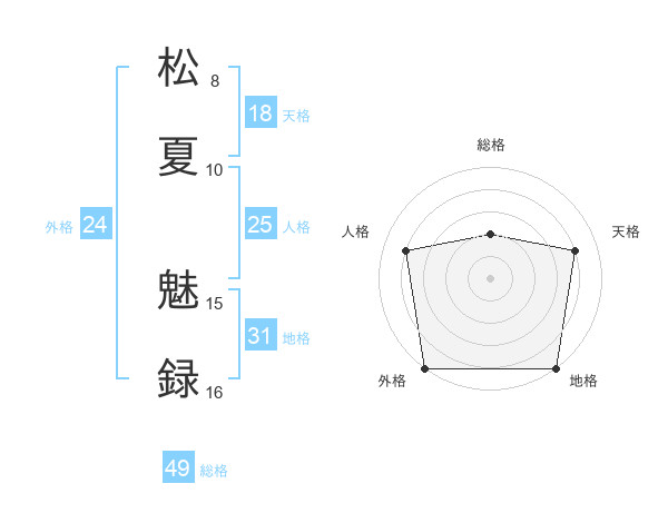 松夏 魅録さんを姓名の画数から五運を鑑定