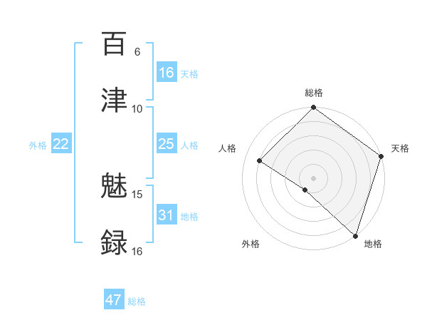 百津 魅録さんの総格は47画の5点!