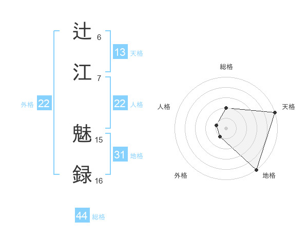 辻江 魅録さんを姓名の画数から五運を鑑定