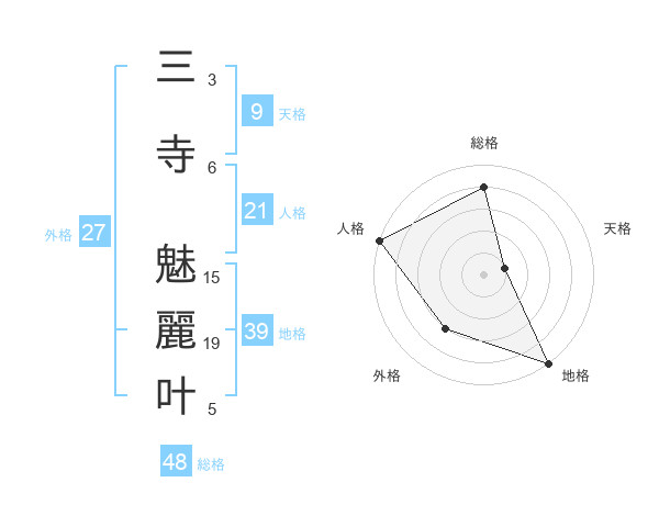 三寺 魅麗叶さんの地格は39画の5点!