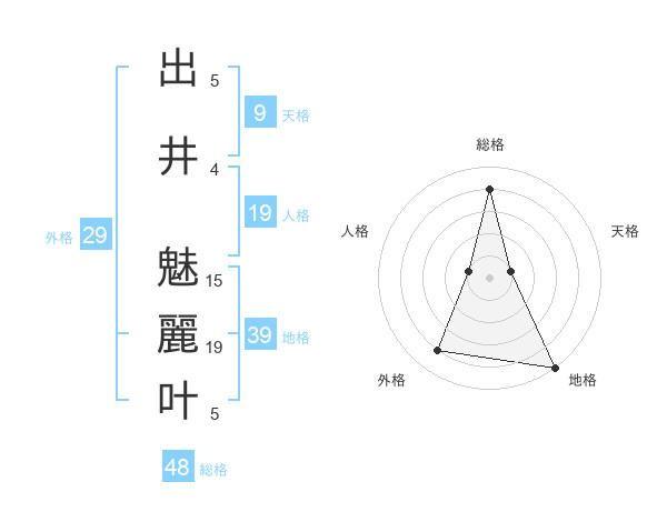 出井 魅麗叶さんを姓名の画数から五運を鑑定
