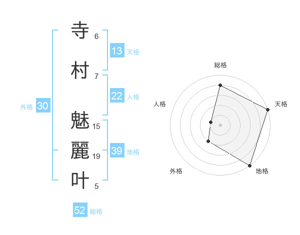 寺村 魅麗叶さんを姓名の画数から五運を鑑定