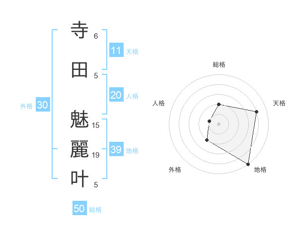 寺田 魅麗叶さんの総格は50画の2点!