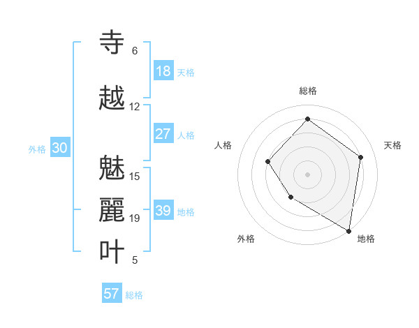 寺越 魅麗叶さんの総格は57画の4点!