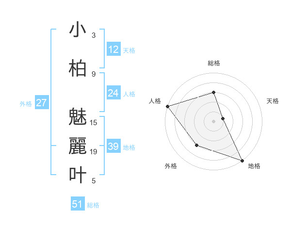 小柏 魅麗叶さんを姓名の画数から五運を鑑定