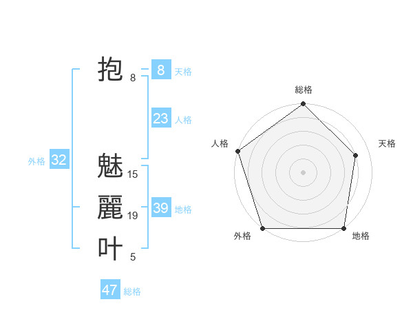 抱 魅麗叶さんの総格は47画の5点!