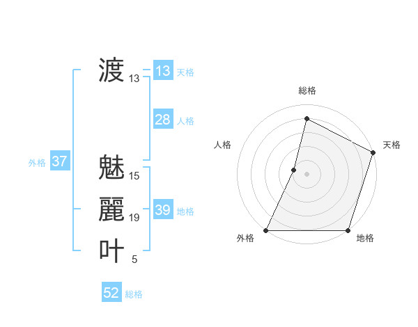 渡 魅麗叶さんを姓名の画数から五運を鑑定
