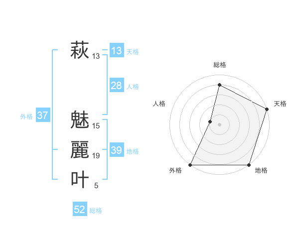 萩 魅麗叶さんの外格は37画の5点!