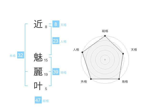 近 魅麗叶さんの外格は32画の5点!