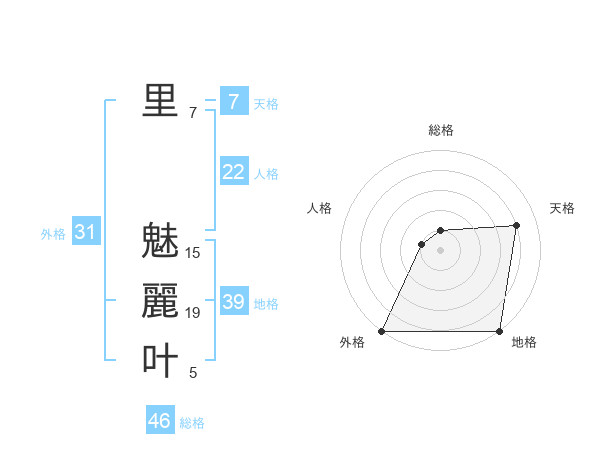 里 魅麗叶さんの外格は31画の5点!