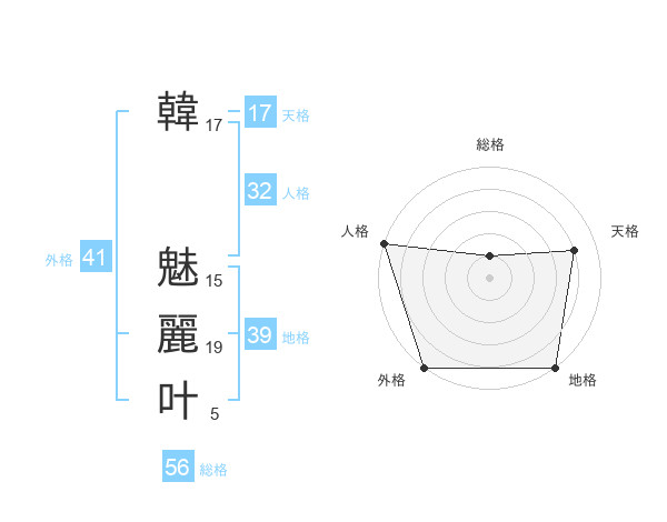 韓 魅麗叶さんの外格は41画の5点!