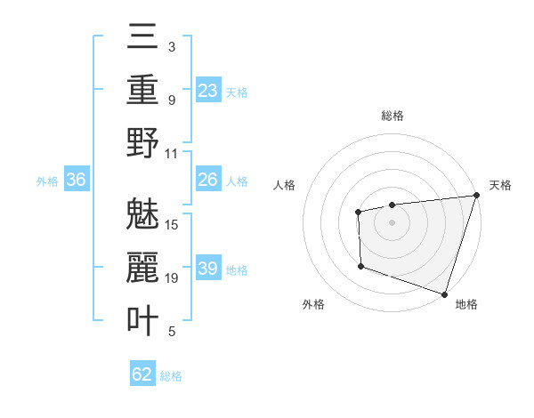 三重野 魅麗叶さんを姓名の画数から五運を鑑定