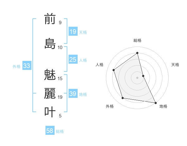 前島 魅麗叶さんを姓名の画数から五運を鑑定