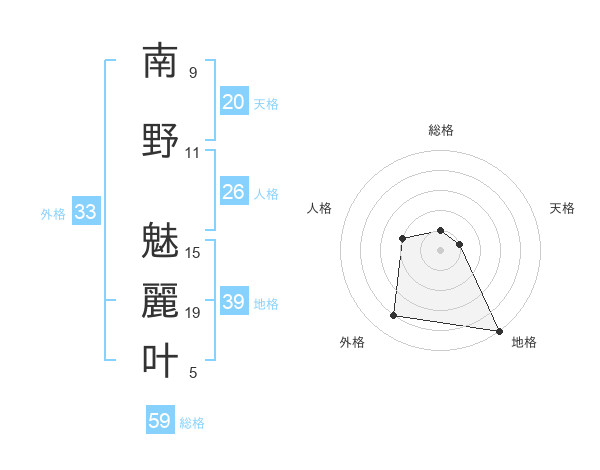 南野 魅麗叶さんの総格は59画の1点!