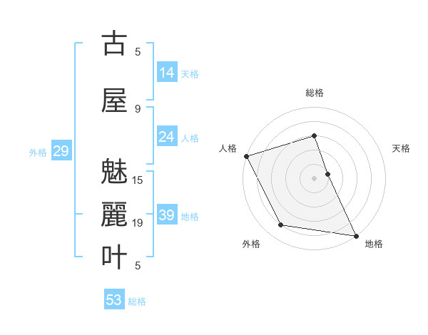 古屋 魅麗叶さんを姓名の画数から五運を鑑定