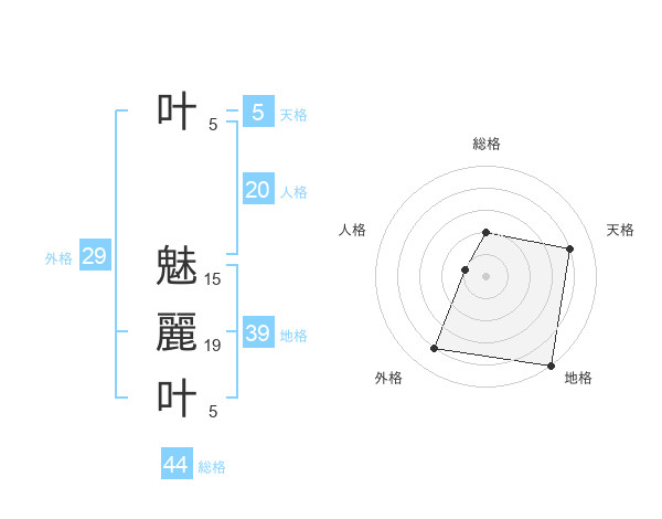 叶 魅麗叶さんの外格は29画の4点!