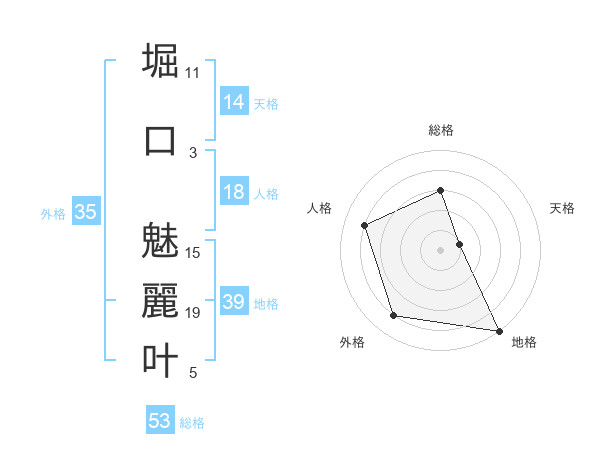 堀口 魅麗叶さんの総格は53画の3点!