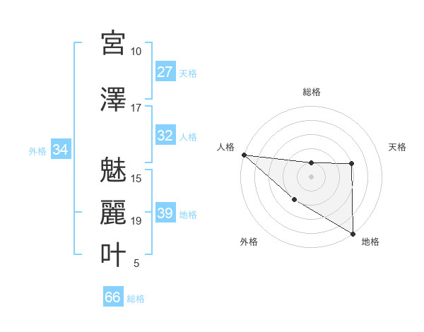 宮澤 魅麗叶さんの総格は66画の1点!