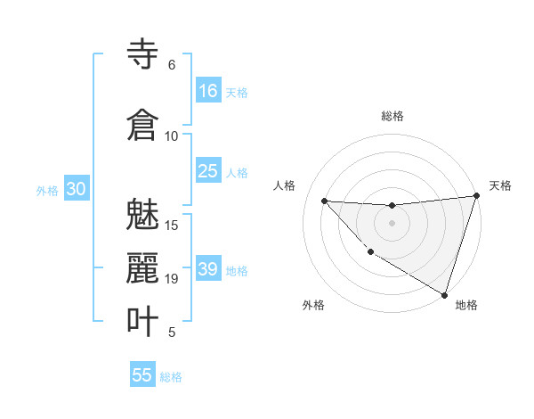 寺倉 魅麗叶さんの天格は16画の5点!