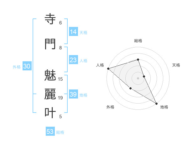 寺門 魅麗叶さんの総格は53画の3点!